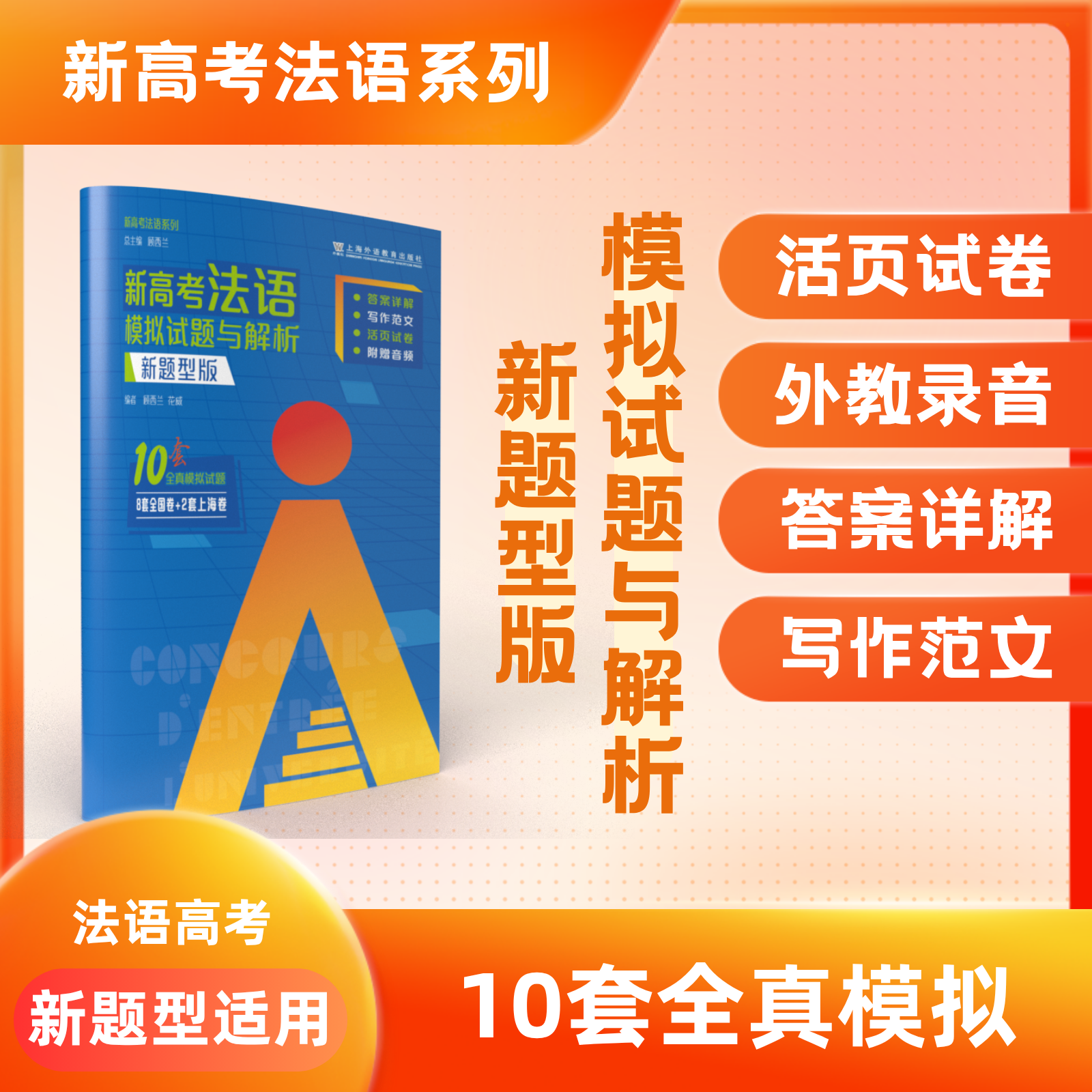 鉴于此,我们调研和分析了目前中学法语教学和测评情况,仔细研读了历年高考法语试卷,包括2024年正式推出的高考法语新课标试卷,在此基础上组织数位资深法语教师共同编写了“新高考法语系列”考试辅导丛书。本系列包括《模拟试题与解析》《听力》《阅读》《语言运用》和《写作》五个分册,覆盖高考新课标全国卷和上海卷的题型。