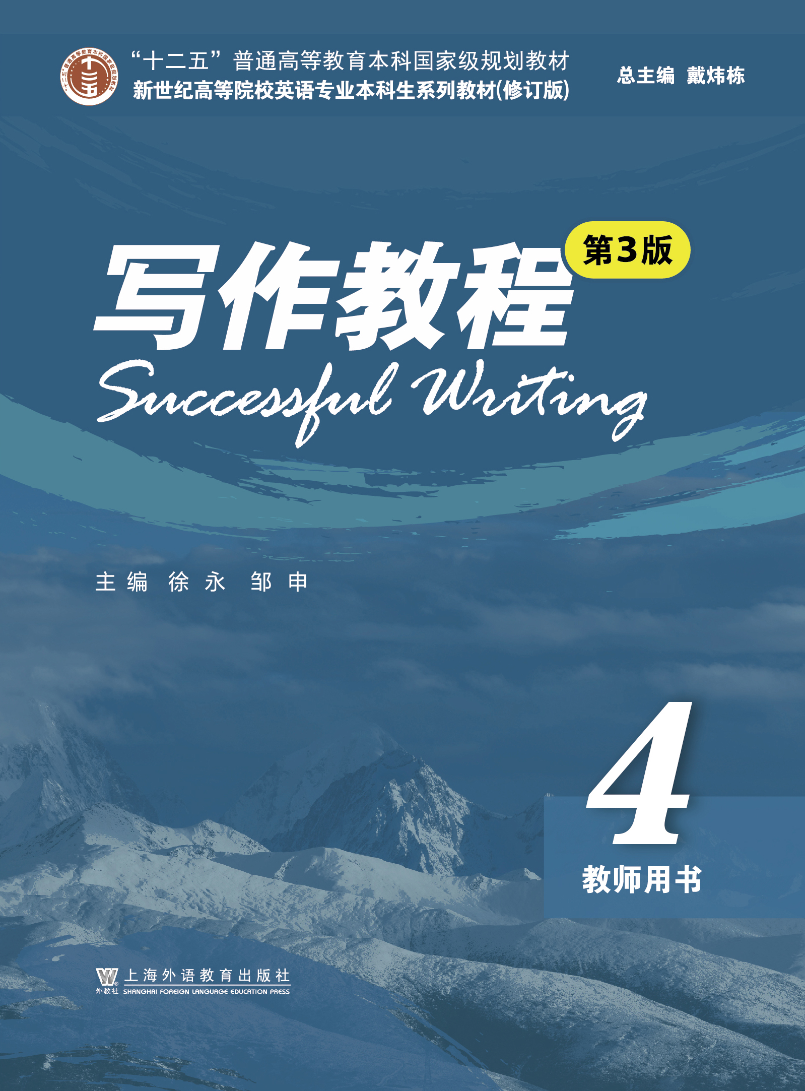 《写作教程》系列第一版于2005年出版,出版后深受高校英语专业师生的欢迎。2019年进行了首次修订。近年来,国家教育部陆续出版了《普通高等学校本科教学质量国家标准》(2019)《普通高等学校本科外国语言文学类专业教学指南——英语类专业教学指南》(以下简称《指南》)(2020)《中国英语能力等级量表》(以下简称《量表》)(2018)等文件,进一步强调了高校立德树人、培养高质量专业化人才的根本任务。本次修订就是基于这些文件精神,特别是《指南》中所规定的英语写作课程的教学目标和内容要求,即“培养学生使用英语进行书面表达的能力,熟练掌握英语写作的基础知识和基本技能,进行多种体裁短文的写作:了解学术写作的基本规范和方法,并能独立撰写小型课题研究报告及论文:养成良好的写作习惯,具有一定的思辨写作能力”,同时总结了使用者的反馈,再次进行了较大幅度的修订,力争体现时代性、人文性、经典性、系统性、科学性和实用性。