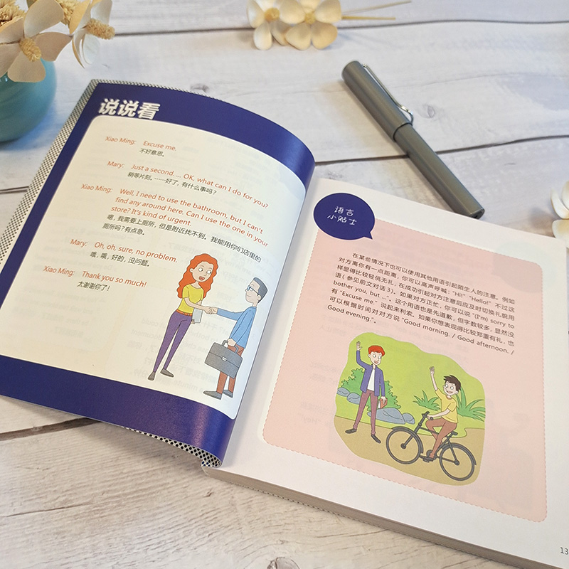 1.课文简单有趣。每课课文以对话形式(“说说看”)出现,记录不同场景下所需使用的典型语言表达。句型简练,表达精准,配有对应汉语译文,双语对照。