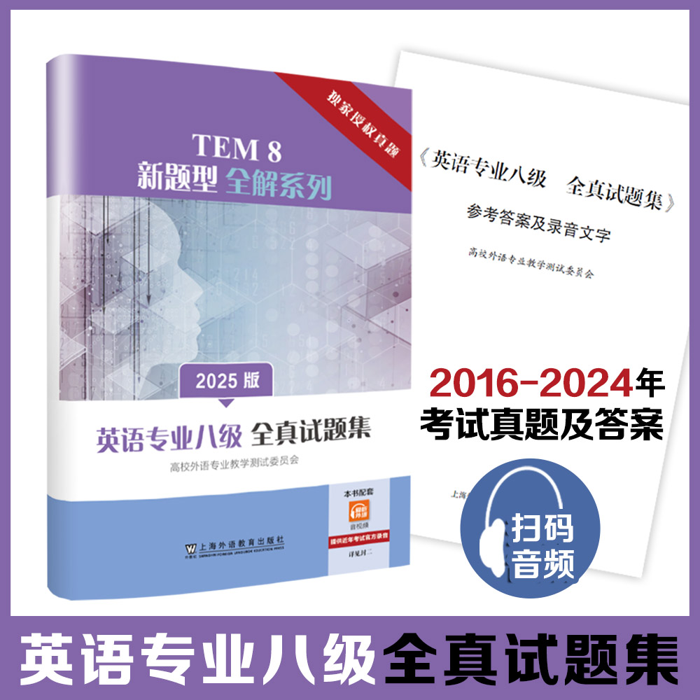 本书为 “TEM8新题型全解系列”中的一本。2015年8月,高校外语专业教学测试办公室发布了《关于英语专业八级考试(TEM8)题型调整的说明》,从2016 年起对专八考试题型做了调整。为帮助英语专业学生熟悉新题型,高效备考,本书主要收录 2016-2024 年共8套(2020年因故未举办)英语专业八级考试真题及答案。每份试卷包括听力(讲座和对话)、阅读理解、语言知识运用、翻译、写作几部分,按照真实考试试卷体例编排,并附有参考答案和全真录音,为学生备考提供真题实战。